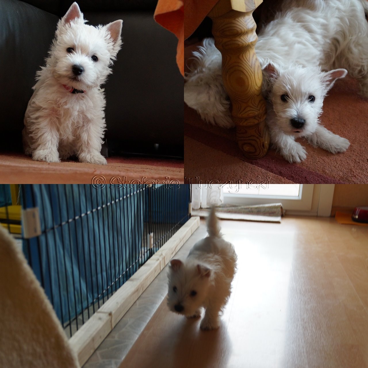 Bis morgen Euer The beloved Tommy on Troublemaker StreetMittwoch, der 18. Mai 2016Hallo! Heute haben mich Nicole, Alexander, Maja und Elias abgeholt, damit ich mein neues Zuhause erobern kann. Natürlich waren meine Züchtermamas traurig und es sind auch ein paar Tränen geflossen. Aber das gehört sich auch, denn schließlich habe ich acht Wochen mit meinen Geschwistern die Bude gerockt. Meine neuen Kühlschranköffner haben die Züchtermamas schon fleißig informiert und meine großen Geschwister haben mir auch alles Gute gewünscht, denn schließlich gehöre ich zur großen Familie der Westies on Troublemaker Street. Die Collage zeigt Bilder aus meinen ersten neun Lebenswochen.